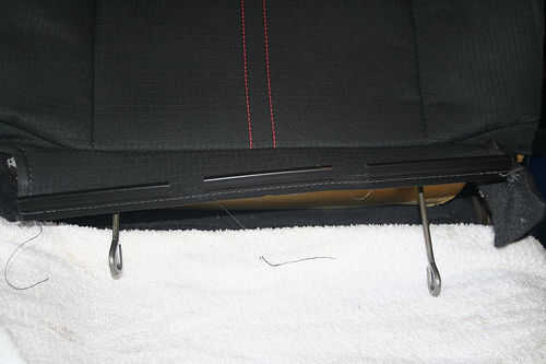 No te preocupes por conseguir las barras por los anillos de metal en el asiento todavía.