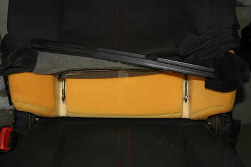 Tire la tela hacia arriba lo suficientemente alta para ver barras de metal en el frente del respaldo del asiento