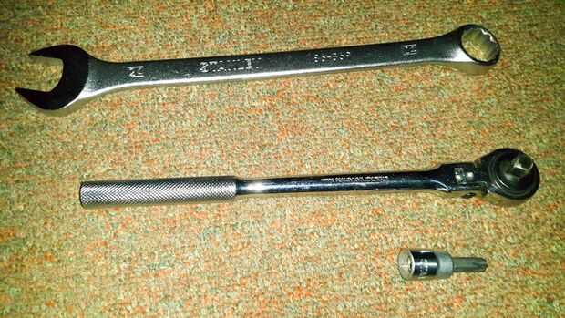 Un zócalo torx, trinquete de 3/8 pulgadas y una llave de 24mm (o 15/16").