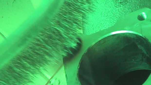 Aquí estamos construyendo hacia arriba el tornillo roto. Una vez que el montículo ha sido creado, entonces es una buena idea para darle un poco de un alambre del cepillado con un cepillo de acero inoxidable, y la última foto muestra bien el montículo del acero suave que podemos ahora, con éxito soldar nuestro perno.