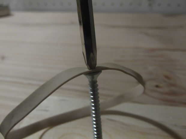 En este enfoque, agarra una goma gruesa y con un destornillador un tamaño más grande que el tornillo, empuje el destornillador encima de la goma, en la parte superior del tornillo. Aplique una presión firme y gire suavemente. Recuerde, righty-tighty, lefty-loosey!