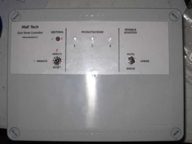 Hay tres estaciones de prueba, cada uno con un gran botón rojo y una tira led utilizado como indicador luminoso. El primer competidor que empuja su botón rojo "gana" la Facultad de responder a la pregunta del presentador. Cuando usted presiona el botón por supuesto las otras dos estaciones se desactivan y sólo el presentador puede activarlos otra vez.