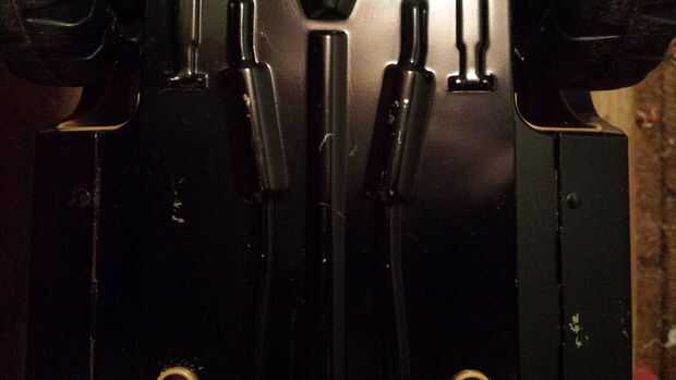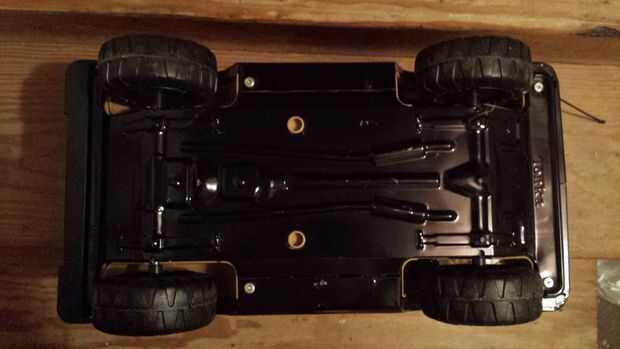 Para sacar el tren de aterrizaje, usé una rueda de corte de alta velocidad $20 de carga de puerto para el trabajo. Usé una Dremel el primer tiempo ya no tengo este disco y tomó un tiempo pasé por un montón de discos que uso el derecho de la herramienta para él y hacerse con él en un par de minutos, no media hora. En la parte trasera de la camioneta, la corte más allá de la línea de metal se puede ver en el interior del camión donde se encuentra una capa de metal. Al realizar este corte, el metal con el nombre de Tonka sale pero retener porque ayudará a mantener rigidez en la espalda. En el frente, tendrás aproximadamente una pulgada de metal inclinada. Después de realizar el corte, la parte inferior aún se conectará a los lados. No necesita cortar los lados. Hay seis fichas en el interior que se puede levantar para arriba con un destornillador. Los Levante, dan la vuelta, y entonces verás dos remaches en la parte inferior que hay que taladrar. Una vez que taladra ésos hacia fuera, la parte inferior debe caerse.