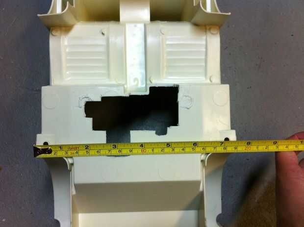 Siga las instrucciones en cada imagen que asoma sobre las zonas resaltadas y le dará consejos. Utilizo las medidas para dibujar un contorno en el plástico y luego realizar los cortes. A ir más rápido de esa manera. Una vez haya terminado, usted puede hacer una prueba para ver qué tan bien alinea. Si está apoyado en una parte del área del motor, hacer las modificaciones que necesita para conseguirlo como le gusta y luego termines con lo que considero la parte más difícil!