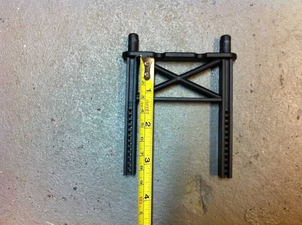 Usted necesitará acortar los posts posteriores del cuerpo a menos que usted no quiere cortar la cáscara interior plástico. Recomiendo cortar la cáscara porque puede montar el carro inferior al chasis y bajará el centro de gravedad. Si desea montar en la parte superior, a continuación dejo los mensajes como es. Si vas a cortar, cortar los postes son 3 1/4" largo como se muestra en la imagen. La medida va desde la parte inferior del poste a la parte inferior de la barra transversal superior. Puede que desee detener esta tala hasta después de que esté listo secar colocarlo en el carro pero es usted.