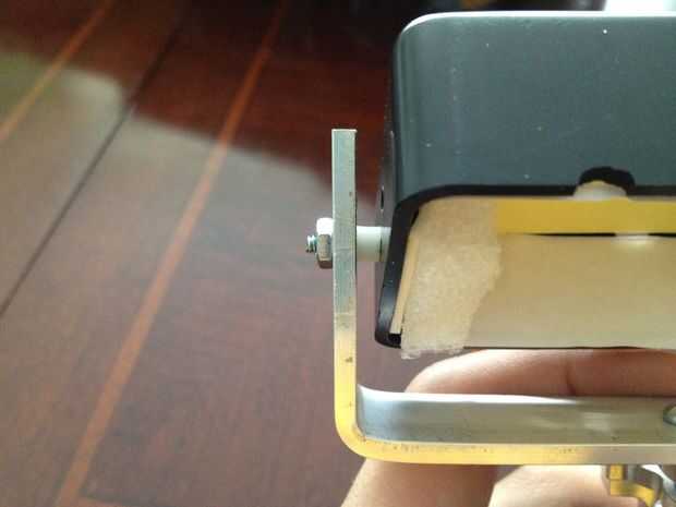 Si sólo vas a hacer una configuración de pan, entonces será muy fácil. Solo pegamento o tornillo de abajo de la caja del proyecto a la parte superior de la ServoBlock y listo. Si desea que la capacidad de mirar hacia arriba o hacia abajo, es mucho más trabajo. Lo que tienes que hacer es tomar ese pedazo plano de aluminio y cortar a la longitud correcta para encajar alrededor de la caja del pequeño proyecto. Ser seguro que usted cortó él tiempo suficiente para que deje suficiente espacio entre la caja y el aluminio por lo que puede inclinar un poco hacia abajo. Al hacer la medición, usted querrá Asegúrese de que dejar suficiente espacio para las cabezas de los tornillos 6-32 cuando la caja está inclinada para arriba un poco. Una vez más, si tienes la parte superior de la barra de rodillo, ese espacio no importa tanto como usted puede tener más espacio entre la caja y el aluminio. Si tienes la tapa de Bronco, entonces necesita tener cuidado en las medidas aquí. Ver la sexta y la segunda a la última foto para hacerse una idea de lo que quiero decir. Tendrás que hacer una modificación a la parte inferior de la caja de corte espacio para asegurarse de que borra las cabezas de los tornillos. Si la haces más alto en su lugar para despejar la cabeza sin tener que modificar la caja, luego la parte superior de la caja llegará a la parte superior del carro y usted no será capaz de inclinar hacia arriba o hacia abajo. Es un ajuste apretado pero te funciona bien.