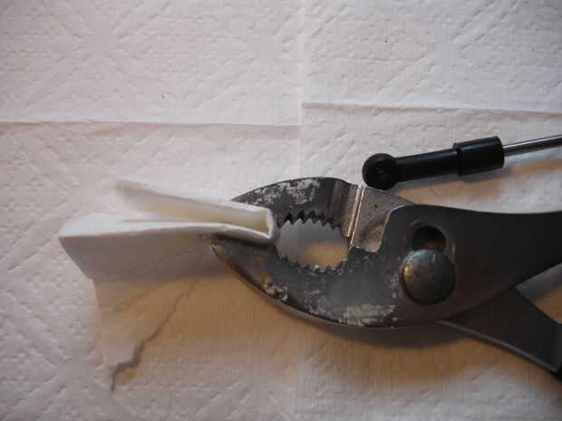 Fije una paz de papel de seda a sus alicates (ver foto 3).