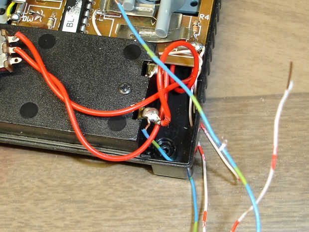Algunos pequeños agujeros para que los cables pueden salir del taladro, ponga que los cables aunque ellos, tenga cuidado de asegurarse de que los cables no molestar alguna de las partes mecánicas dentro del controlador (por ejemplo, el palo o la tapa metálica o detener la cubierta de cierre completamente).