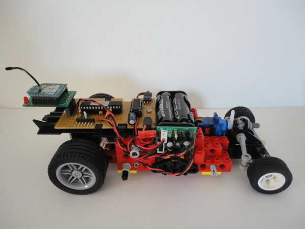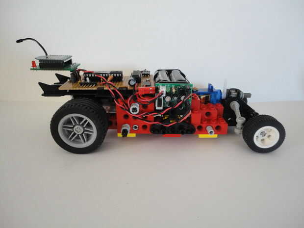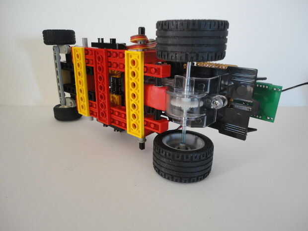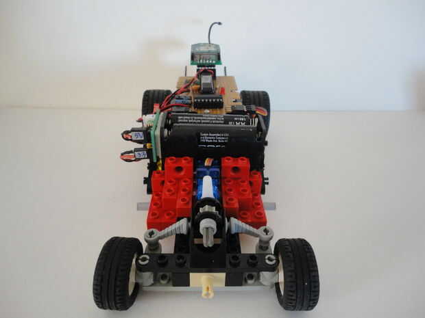 ¿Qué es?Un coche de lego controlado por el sensor de acceleremoter en un dispositivo android a través de bluetooth.¿Qué es necesitada?1. un coche de lego con dos motores, uno conduce los dos ruedas o de la pista en el lado izquierdo y el otro motor d