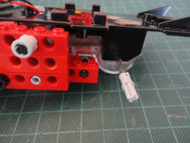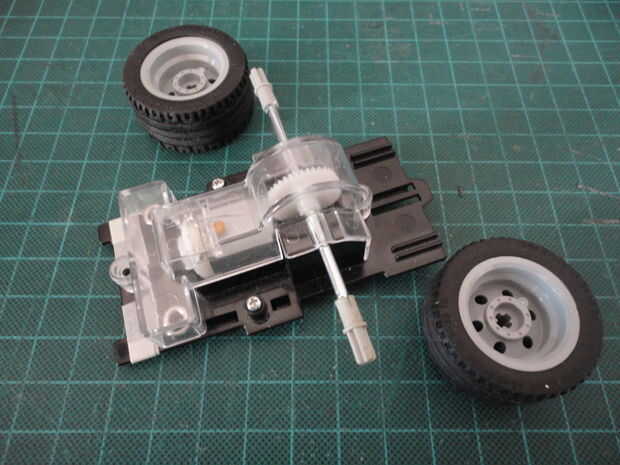 El bono fue que el motor con el eje y el engranaje de gusano ya, con el recinto. Más tarde me di cuenta que los ejes del motor estaba bien equipado con los conectores de Lego.