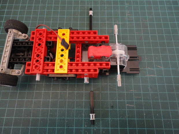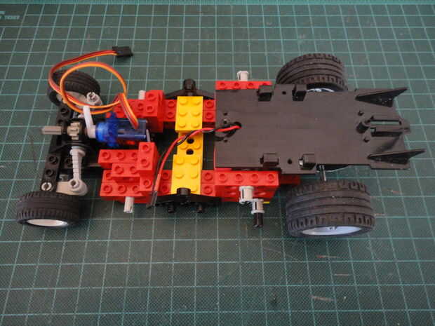 Las fotos de abajo muestran cómo modifiqué el recinto motor con mi R/C de coches de Lego.