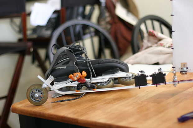 es un landsailer casero usando una vela ala en lugar de una vela de tela tradicional. La vela se construye con una estructura interna del tablero de la espuma y envuelto con cartulina para crear la forma de la superficie de sustentación. El marco es bastante simple, solo 2 tiras de aluminio atornillados juntos andar en 3 ruedas de hoja de rodillos (rodamientos grandes) para formar un resistente base para evitar que el viento bancos. Ángulo el marco delantero de la rueda delantera para que se incline en las curvas. Parece que funciona bastante bien. La electrónica es 2 servos Futaba antigua y un receptor barato que podrido de un planeador ruina. Un servo gira la rueda delantera y el otro enciende la vela izquierda y derecha para coger el viento.