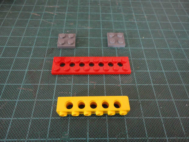 La foto 1, 2, 3, 4, 5 Dos 2 x 2 de la placa (#3022), 2 x 8 técnica de la placa (#3738) y 1 x 6 técnica ladrillo (#3894)