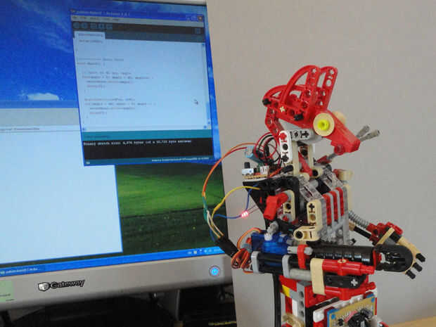 Pero si no tienes componentes de Lego construyen este Bot de destino. Una de las opciones es establecer algunas figuras mini como los objetivos, similares a los bolos. Entonces podría controlar el droide Shooter para disparar los dardos intentan derribar todas las mini figuras de un golpe.
