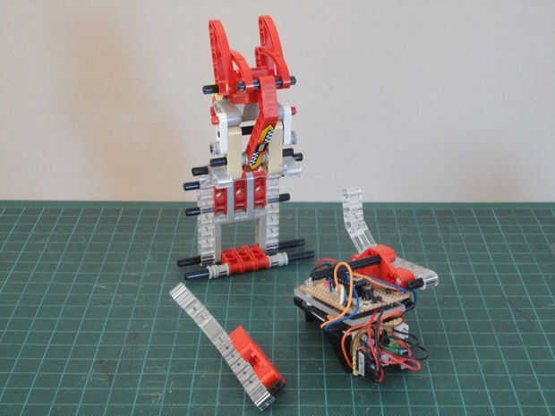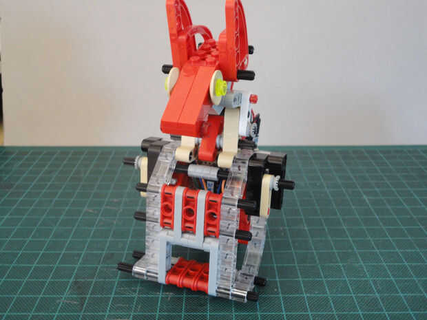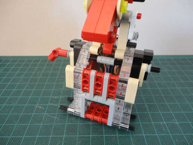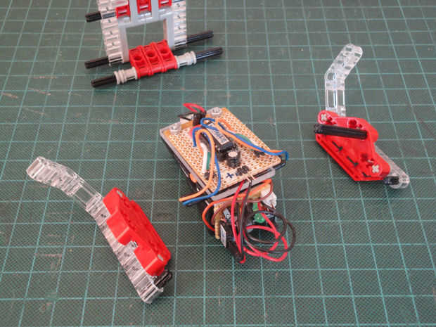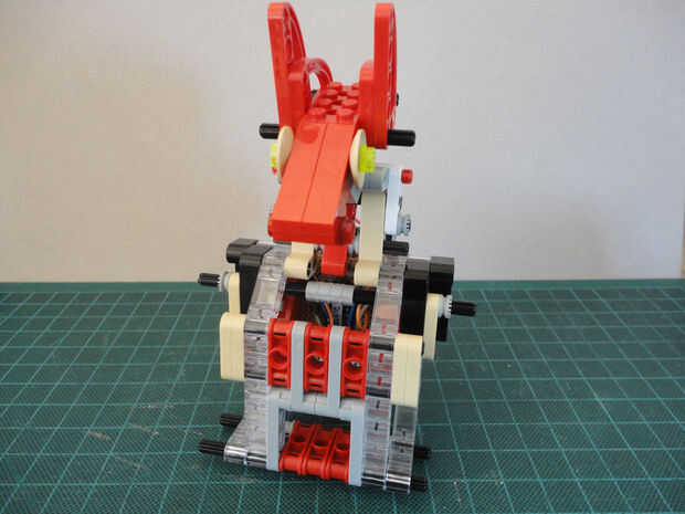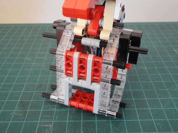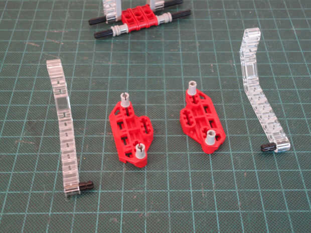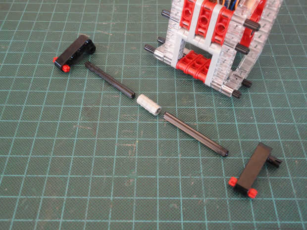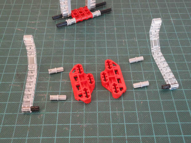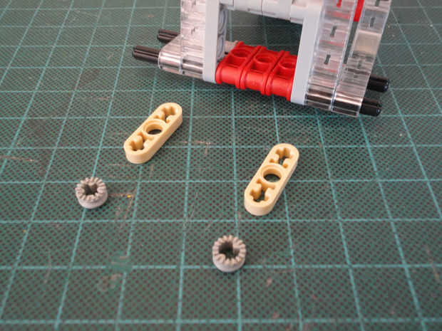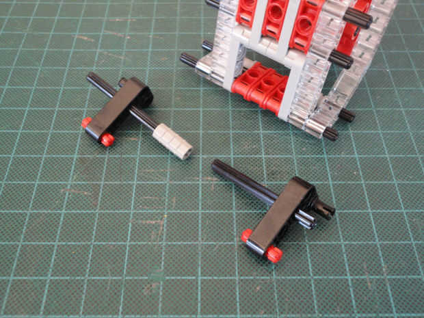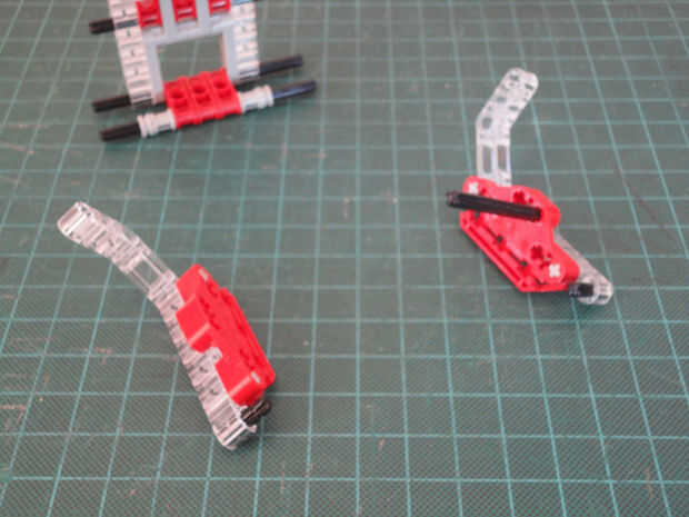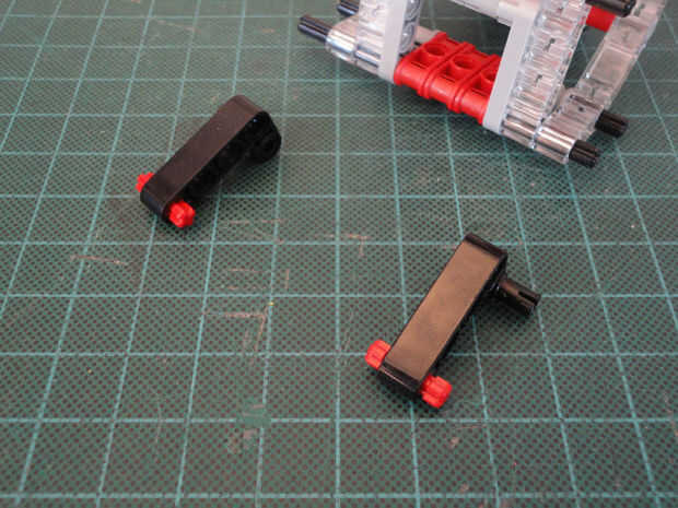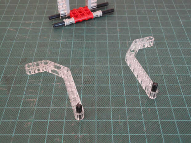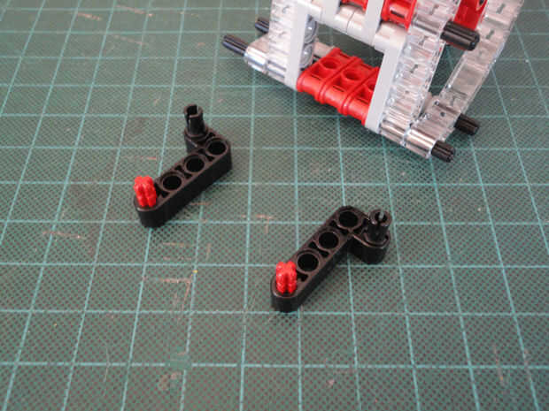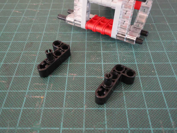 Foto 1, 2, 3 Dos Liftarm 1x11.5 doble doblado espesor (#32009), y dos cruzan eje M 2 con Groove(#32062)