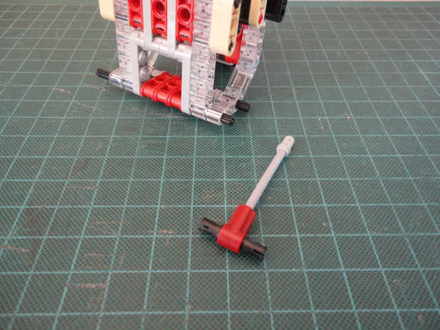 Foto 12, 13, 14 Dos conector Peg con fricción (#2780), eje de cruzar dos M 2 con Groove(#32062) y dos Liftarm forma de L de 2 x 4 (#32140)