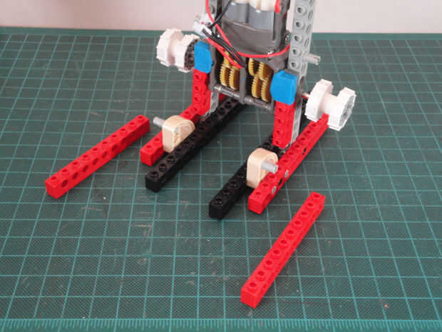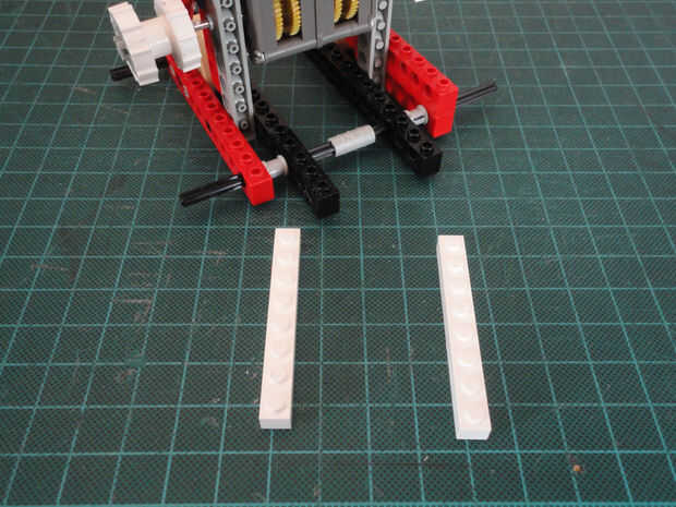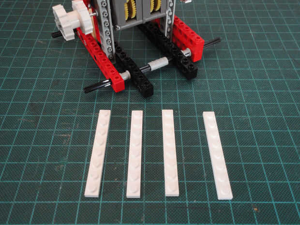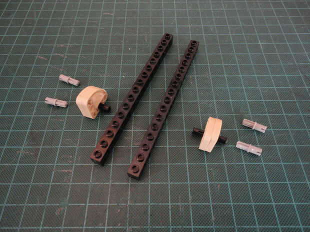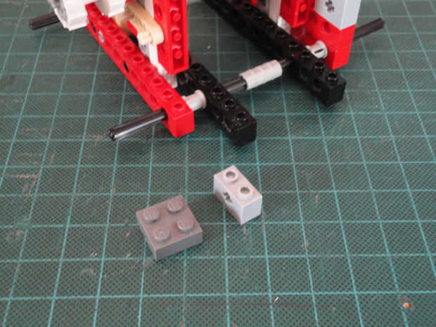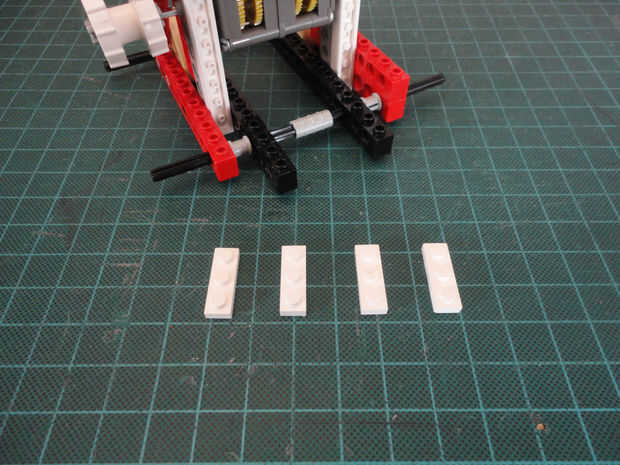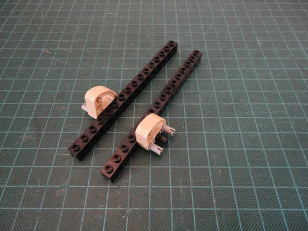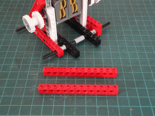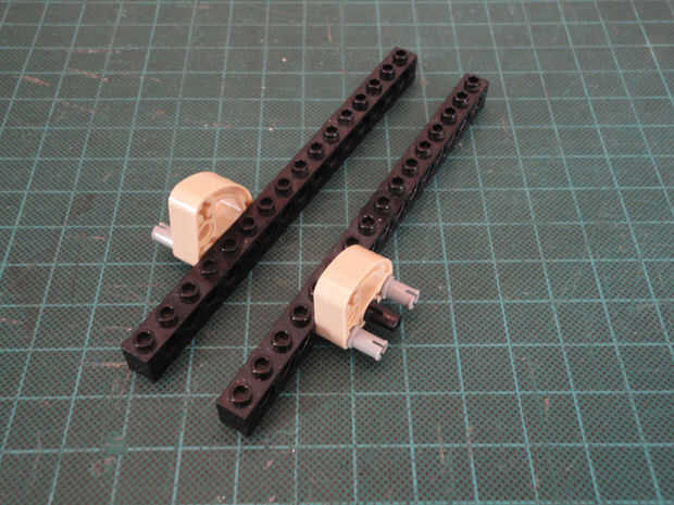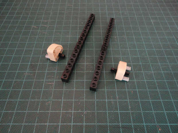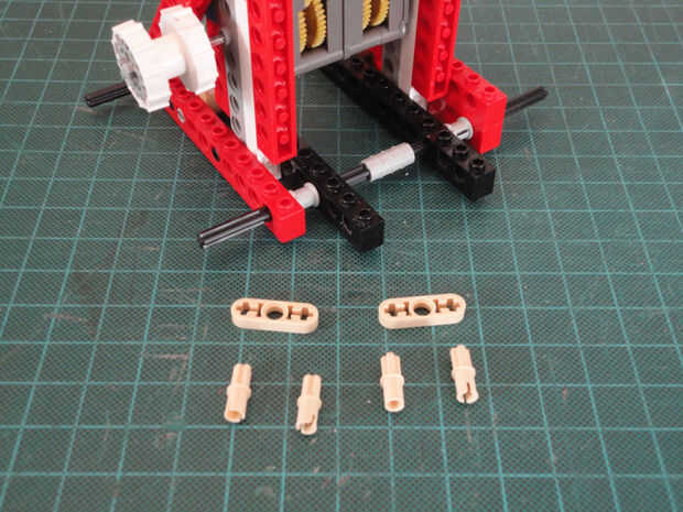 Foto 40, 41, 42 Dos Liftarm 1 x 3 fina (#6632) y cuatro conector Peg/cruz eje (#6562)