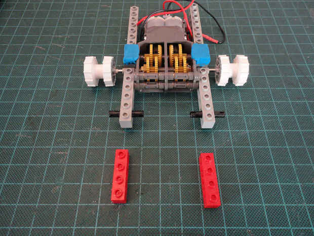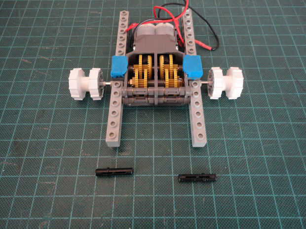 Foto 4 Caja de engranajes de doble montado y los componentes LEGO.