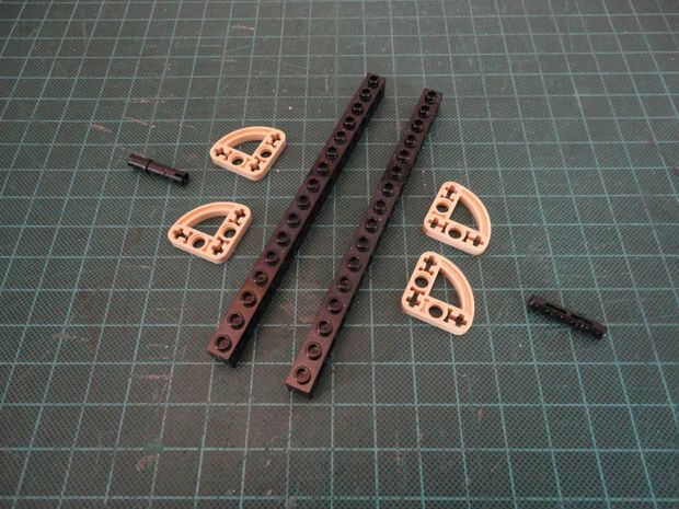 Foto 9, 10 Dos conector Peg con fricción 3M (#6558), cuatro 3 x 3 Liftarm (#32249) y dos de 1 x 16 técnica de ladrillo (#3703)