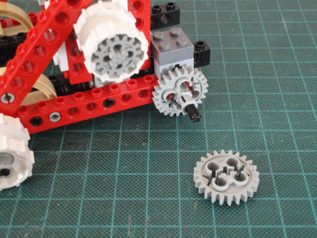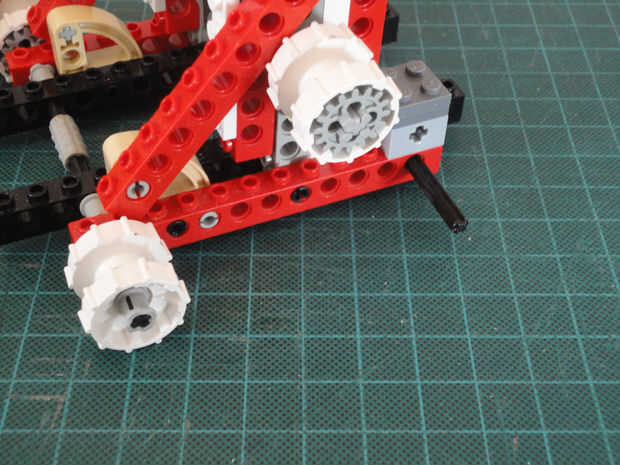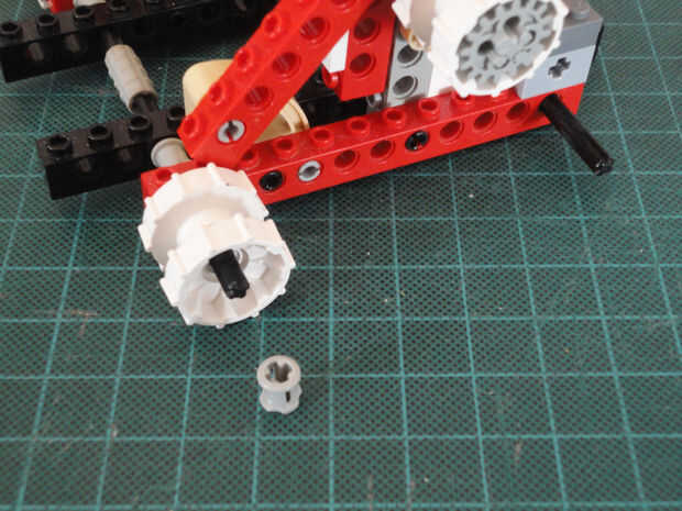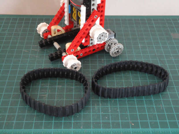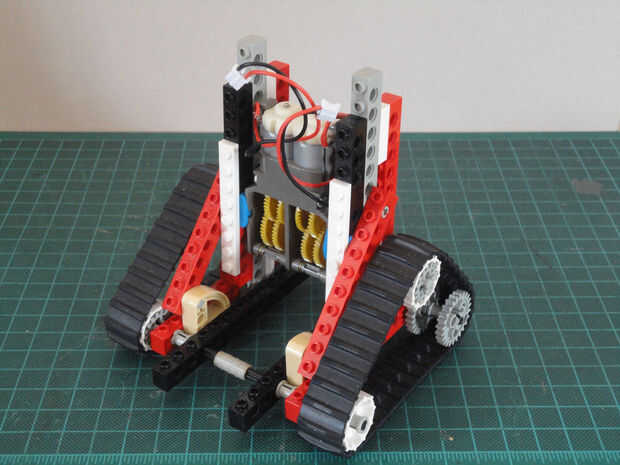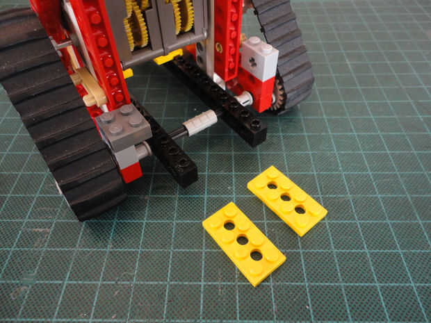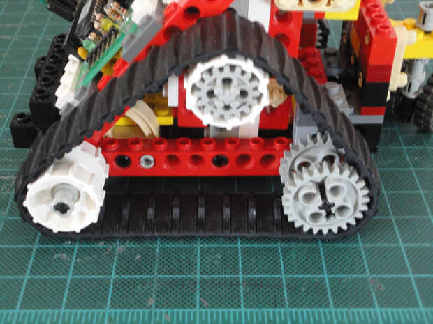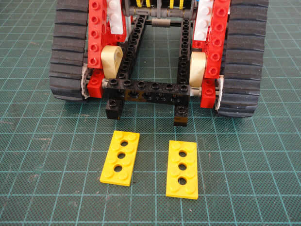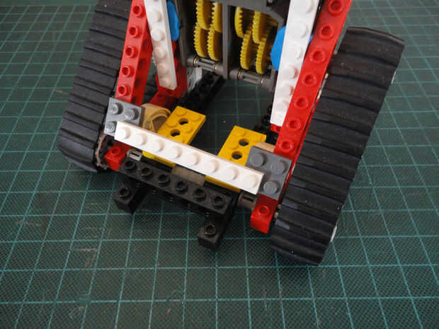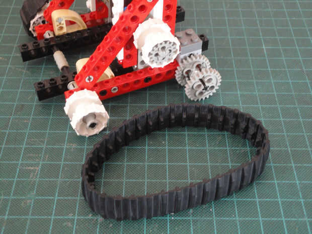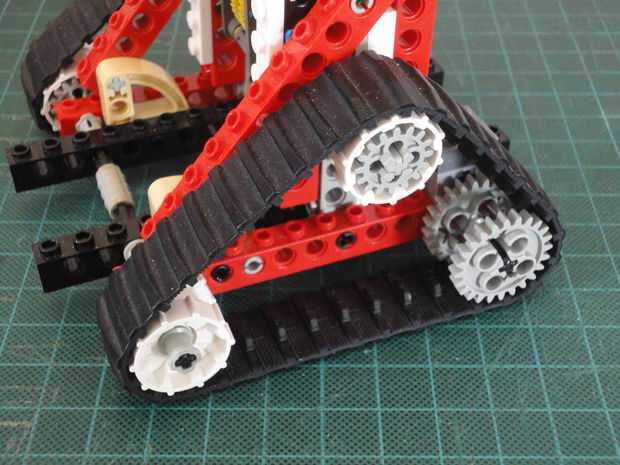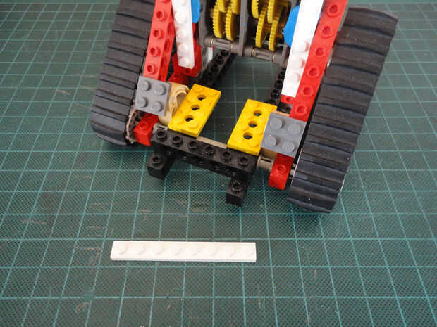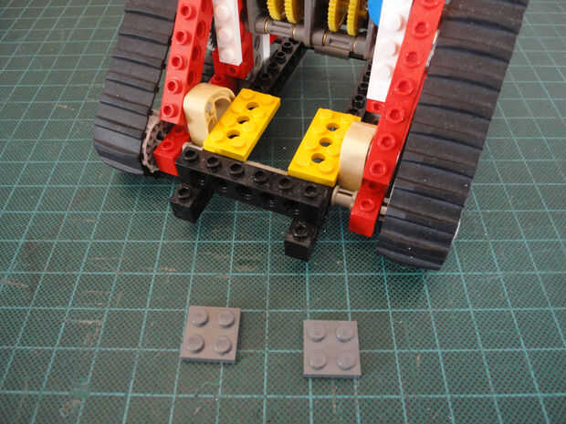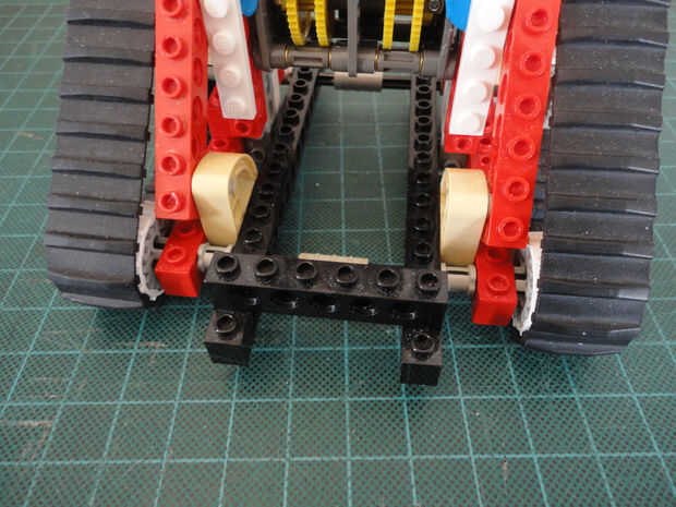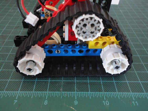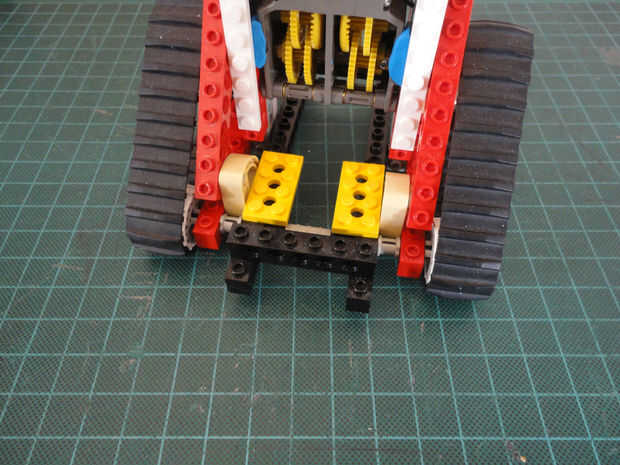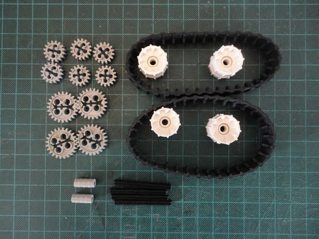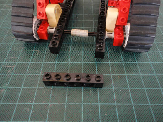 Para pista y centro de instalación de Lego pista Bot Lego pista Bot instructable, paso 4:Tracks y bujes y paso 9: pista y ejes parte 2.