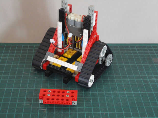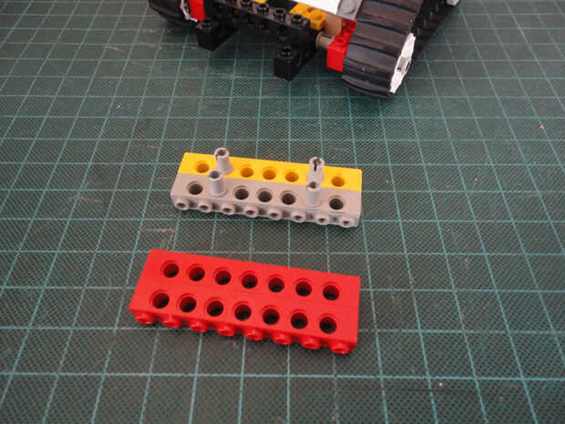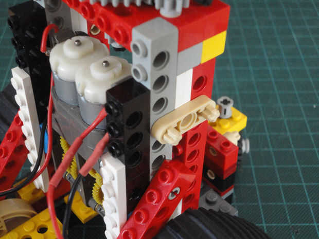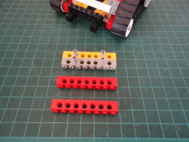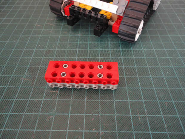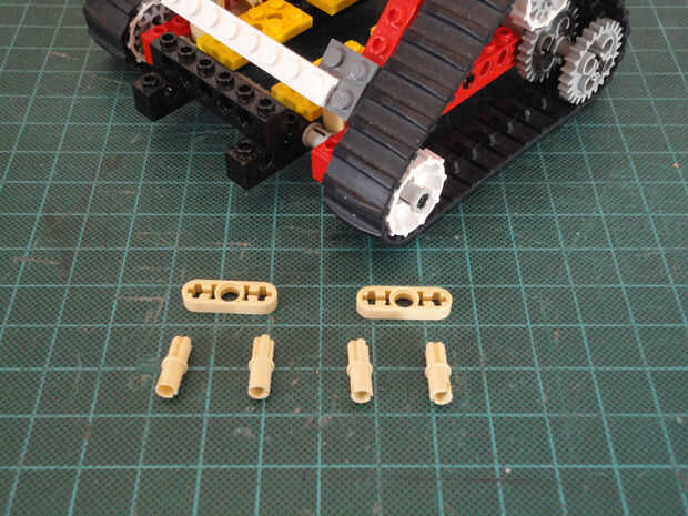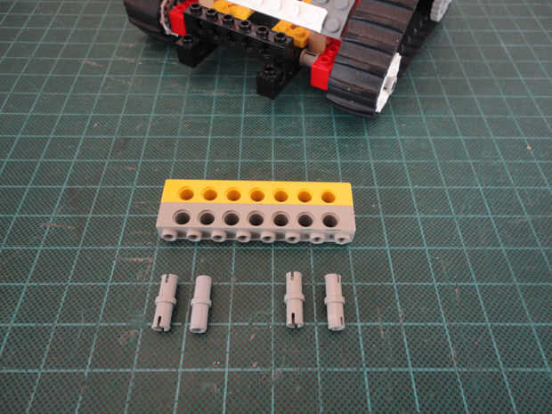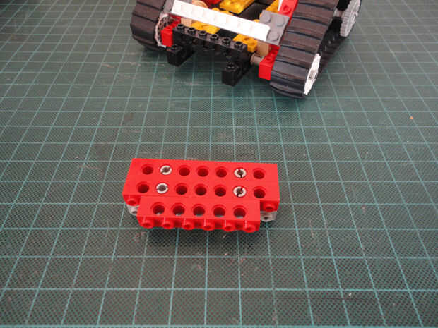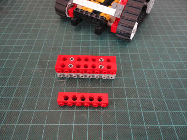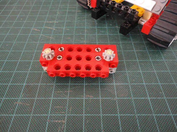 Foto 27, 28, 29 Dos Liftarm 1 x 3 fina (#6632) y cuatro conector Peg/cruz eje (#6562)