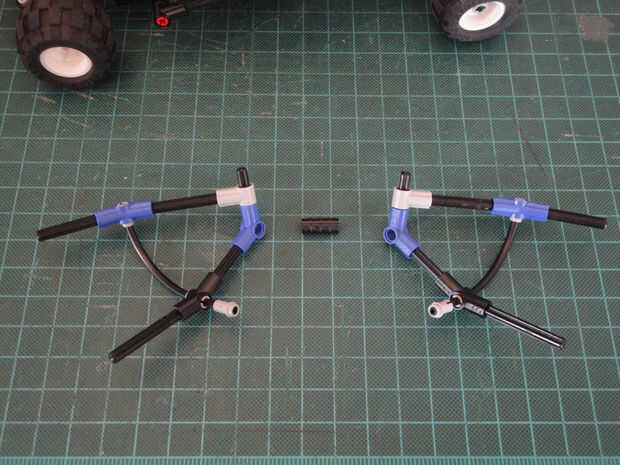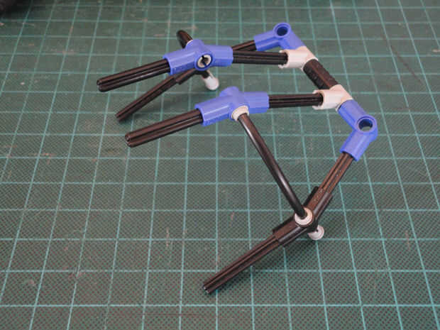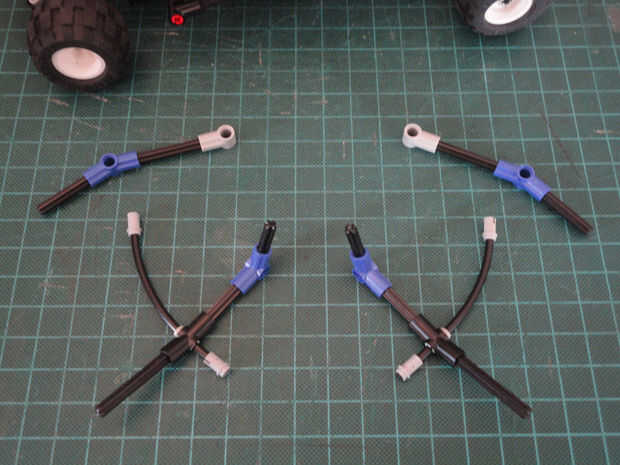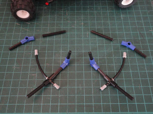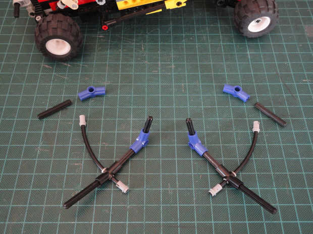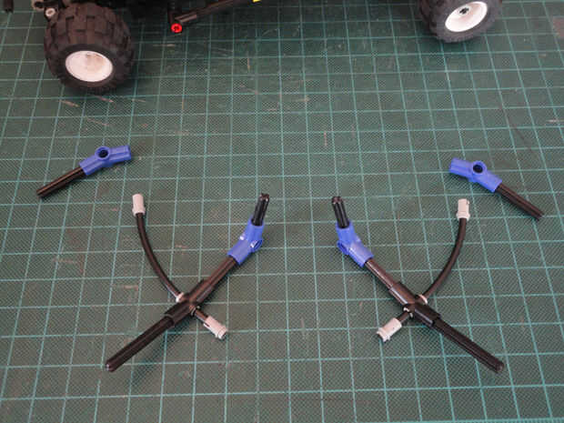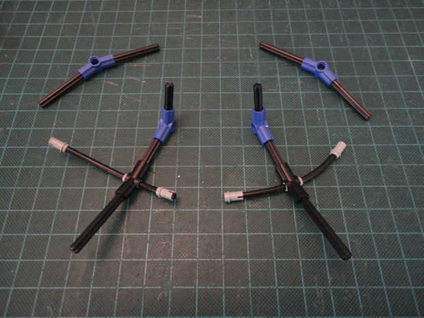 Foto 16, 17 Dos cruzan eje 4M (#3705) y dos ángulo elemento [3], 157,5 grados (#32016)