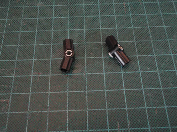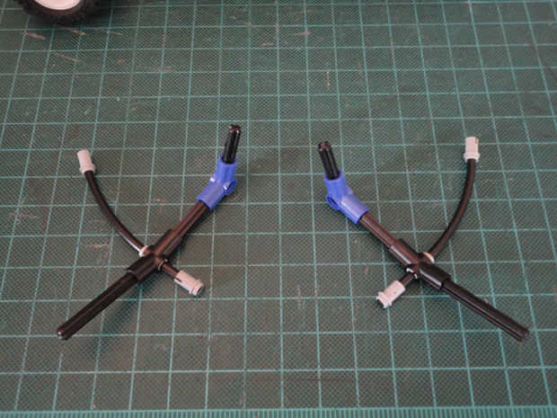 Foto 1, 2 Dos ángulo elemento [3], 157,5 grados (#32016) y dos de conector de clavija con la perilla (#4274)