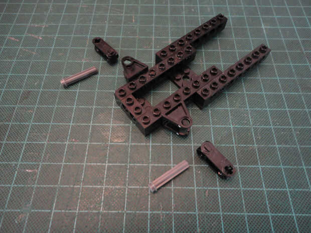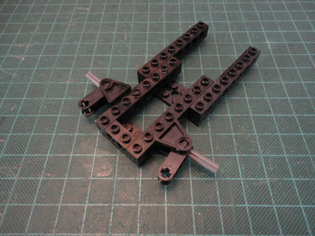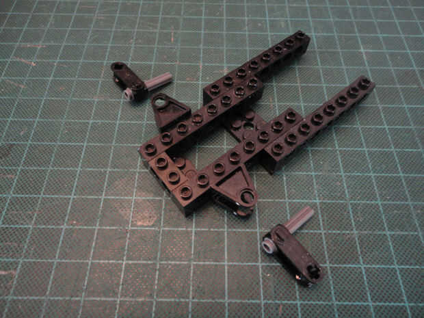 Foto 12, 13, 14 Dos eje Cruz con la perilla (#6587) y dos conectores perpendiculares de Pin eje 3L (#32068)