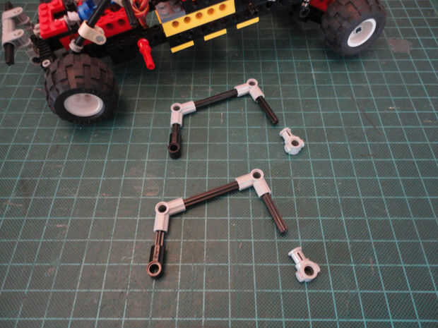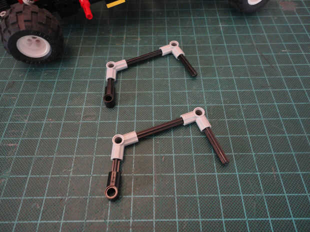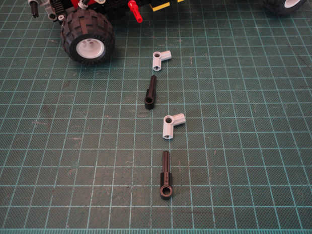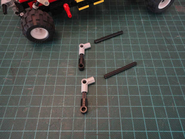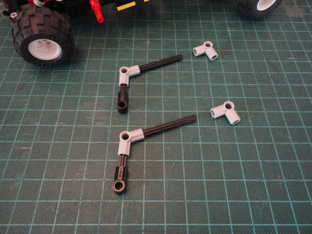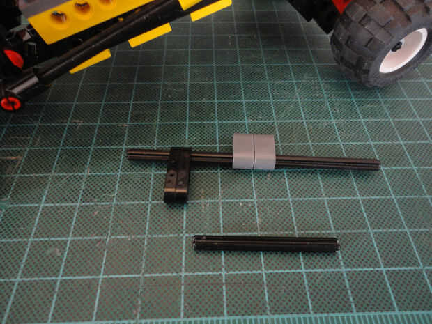 Foto 19, 20 Cruz de eje 12M (#3708) y dos Liftarm 1 x 2 con agujero y el agujero del eje (#60483)