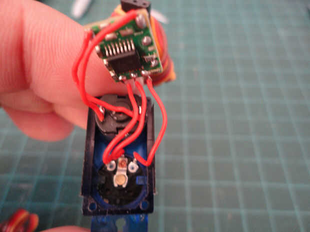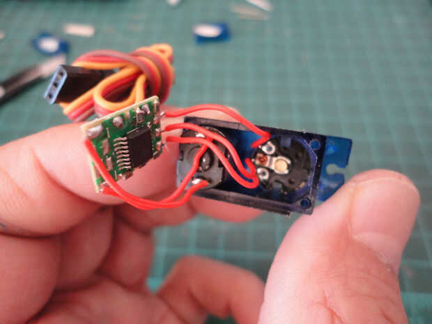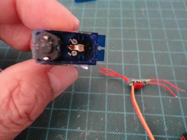 Foto 18 Tengo todos mis tres servos rotos convertidos en motores utilizables y listo para ser utilizado en mi próximo proyecto. (Yo sólo utilizará dos de ellos en este proyecto.)