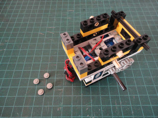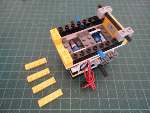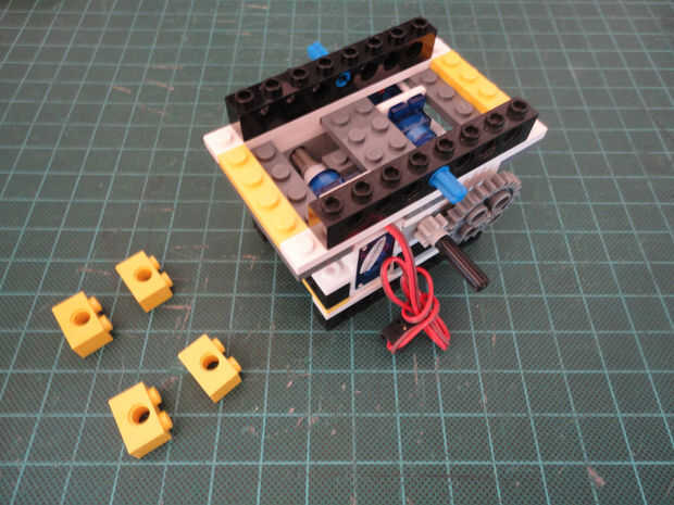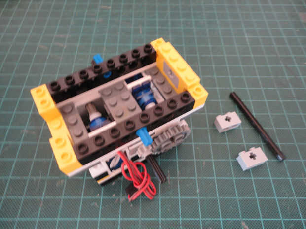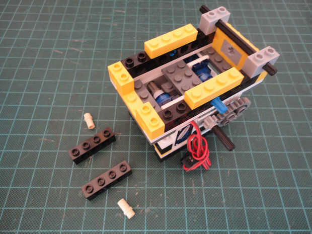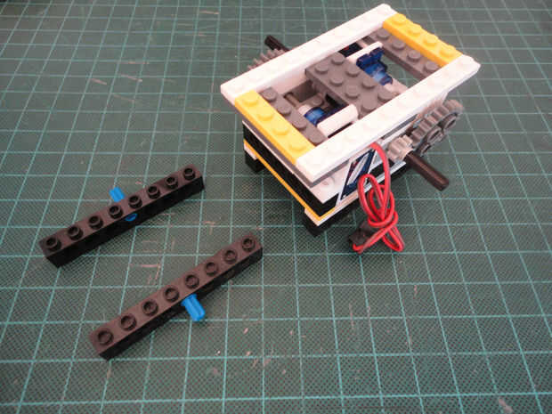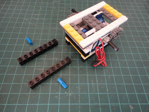 Foto 17, 18, 19 Dos Tan dos 1 x 4 técnica ladrillo (#370126) y 1-1/2 conector Peg (#32002)