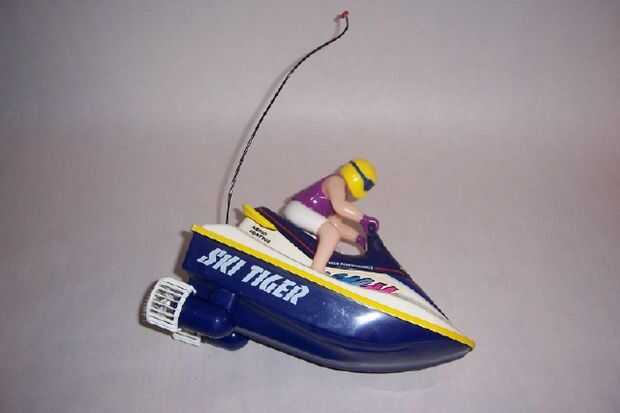 Luego sella la parte inferior del casco y volver a montar la moto de agua vacía, motorless con un peso pegado en la parte inferior. Ahora es un pushtoy de bañera para mi nieta.