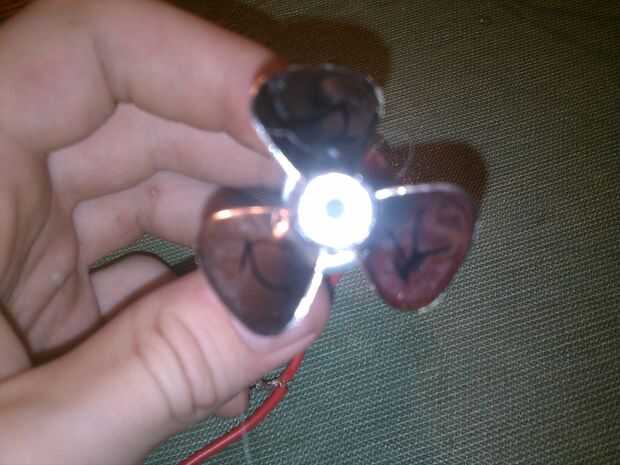 (3) hélices. Éstos van en los motores para propulsar el ROV. Encontré uno de un viejo modelo de avión y dos gallinas alrededor.