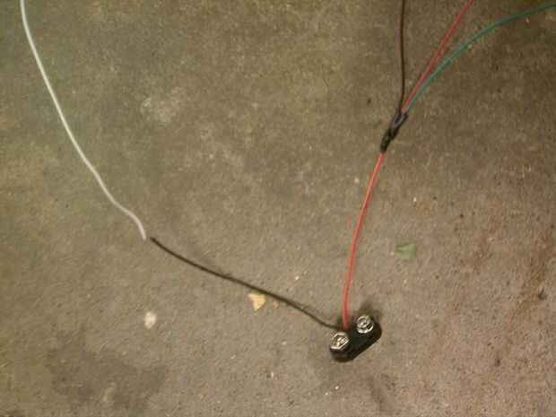 Una vez que se suelda un botón a cada motor positivo, podemos empezar con la batería. Agarra tu clip de batería de 9V. Debe tener uno rojo y un cable negro que sale de él. El rojo es el positivo y el negro es el negativo. Pele los extremos de cada uno de estos cables. En el cable positivo de la soldadura de tres alambres de 5 pulgadas. Así que ahora debe haber 3 cables positivo y uno negativo. Agarre que una "masa" conectado a todos los negativos de motor y la soldadura al cable negativo que sale el clip de la batería. Ahora sale todos los botones que sólo soldados. El cable positivo del motor debe conectarse al conductor medio. La soldadura de los cables positivos provenientes de clip de la batería con el cable correcto de cada botón.