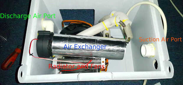 Para el aire de succión y descarga, usé accesorios roscados macho de 3/4 de pulgada pvc para permitir las conexiones de la manguera de jardín estándar hacia el exterior de la caja.