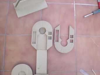 Sacando un plan como en el paso 1 cortaremos tableros de DM en 3 niveles según los planos bajados de astromech.net y adaptandolos al tamaño de nuestra papelera.
