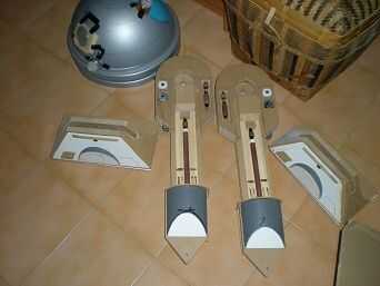 Luego pondremos los detalles de patas de las con madera y tapones de botellas, podemos usar esquineros de plastico para el yeso en los pies y colocar ruedas para sea mas facil moverlo. todas las piezas vienen como hacerlas en la web de astromech.net. para las piezas curvas que usado Gonzalez de PVC y para los pies para acetato de las Naciones Unidas la curva interior. Las piezas de decoración de las patas hijo Gonzalez de cobre de distintas medidas y algún tapon de parta de dientes cortado. el ojo central de la esfera es un trozao de botella de 2 l. de refresco y las Naciones Unidas de marco de madera DM.
