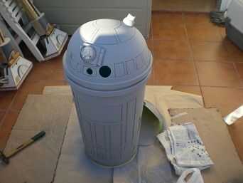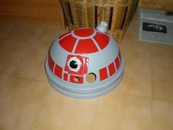 El ultimo paso sería el pintado de todas las piezas y el cuerpo. Es mejor pintarlo primero con una base de pintura se compra en cualquier ferretería. luego la pintura al gusto de cada uno, yo me decidi por aerosol rojo y pintura plastica blanca para el cuerpo. Una recomendación es pinteis todo por frente y ensambleis despues, y para el ojo central recomiendo pintar el plasstico por dentro para de sensación de lente.