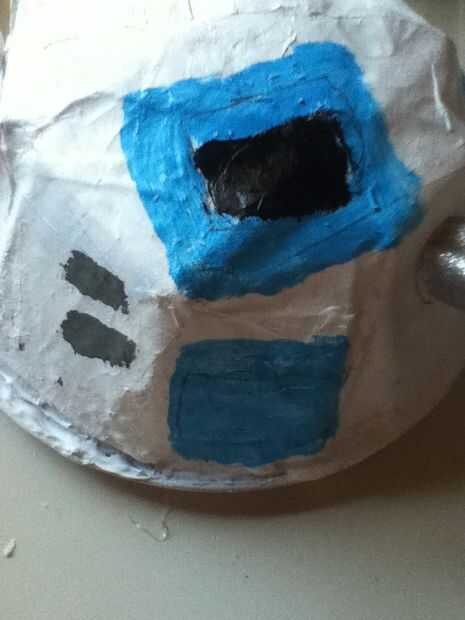 A continuación dibujar detalles de R2-D2 en su cabeza y pintarlos con pintura acrílica.