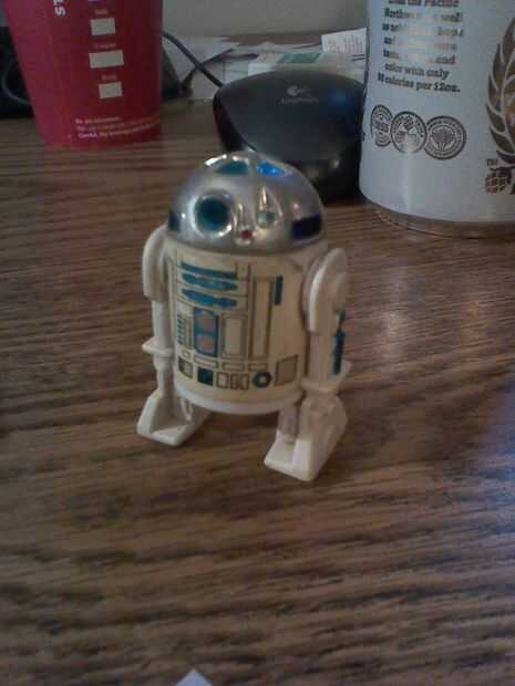 Star Wars Episodio VII salió la semana pasada y lo he visto dos veces. Actualmente estoy trabajando en la construcción de un hiperimpulsor así podemos unirlos en una galaxia lejos muy lejos... Pero mientras tanto no me imaginé que se convertiría mi figura de acción del decenio de 1970 R2-D2 en un adorno de árbol de Navidad.