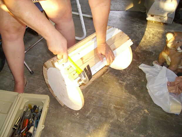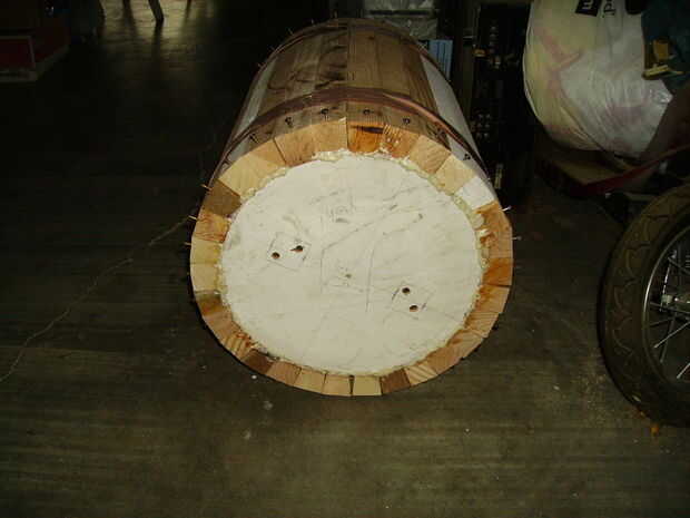 En consonancia con el Punk de vapor, un barril era necesario para el cuerpo. Un barril de clavo hubiera sido gran pero no he visto uno de ésos en los años y ningún "antiguo" que cuesta! Así que construí uno. Con dos discos de madera para la tapa y fondo, listones de madera fueron gorila pegada en su lugar y después del secado, la unidad fue lijada a una forma de barril.