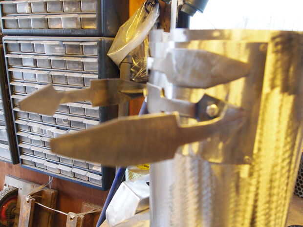 Los otros dos fueron dadas una curva suave, para ver como estaban en las bisagras del cofre que. Estos eran soldados a la chevron de travesaño. Como el punto de conexión era muy pequeño soldó con autógena en abrazaderas de las esquinas para que sea fuerte.