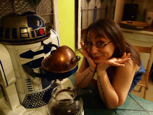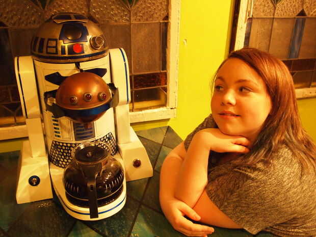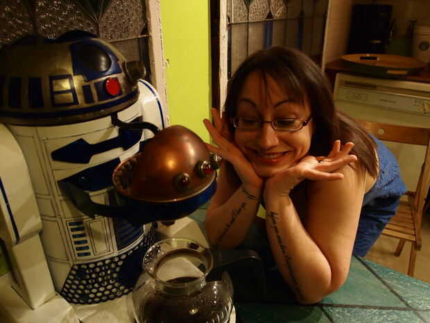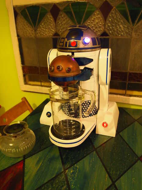 Otra idea intenté pero solo funcionaba bien era para una LED de alta intensidad a través de los ojos de los droides de molido de café. Estas lentes rojas fueron diseñadas para ver sólo la noche y fueron diseñadas para tener sólo un débil resplandor que no inducen ceguera nocturna. Incluso tenían una opción donde si se activa la caja de un iris cerraba ½ manera y reducir aún más el brillo. Un luxeon star de 1 vatio LED apenas luz para arriba y un resplandor icky del molde en la máquina de café detrás de él, así que abandonó esa idea. Incluso trató de shinning un puntero láser a través de ellos, esto les hizo brillar un poco pero la naturaleza de un láser es brillar un rayo. Necesito algún tipo de un separador o 3 láseres, bah.