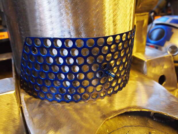 8. cortar ranuras en el anillo de la cúpula para dar cabida a los remaches en la parte superior del cuerpo