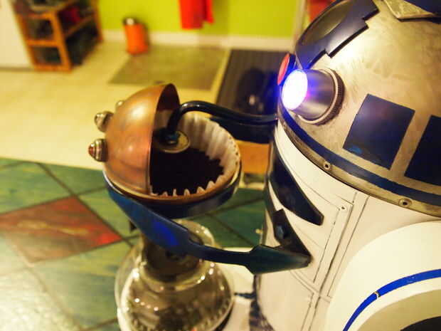 4. corte un agujero para el calentador en la parte frontal inferior del cuerpo de R2