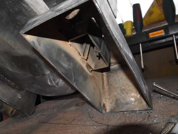 13. colocar el babero – perfore agujeros a través de babero y en cuerpo. Atornille en su lugar. Taladro para conmutación de sonido, colocar babero con interruptor y colocar y volver a perno. Si hay movimiento. Cuando asegure quitar