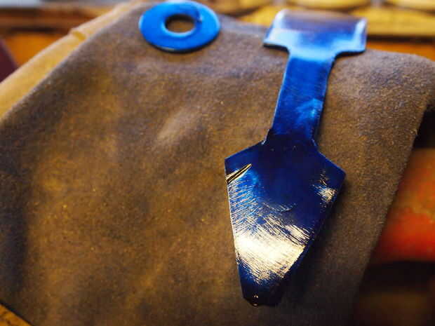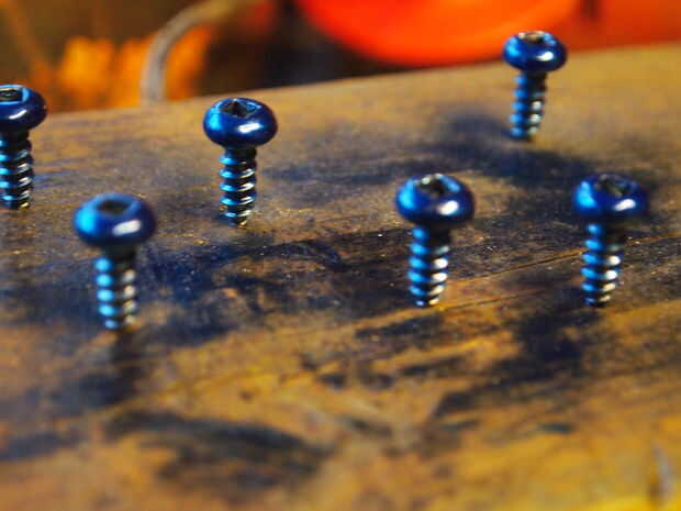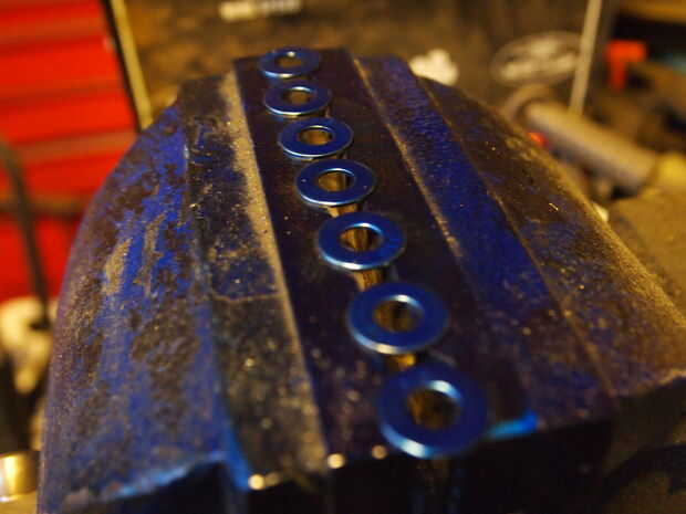 La pintura azul anodizado es similar del esmalte, de hecho débil. Se ve grande, pero fácil de arañazos. Acabé usando de todos modos, pero arriba lo cubrió con una capa de esmalte transparente. Me parece bien, pero creo que el tiempo lo dirá.