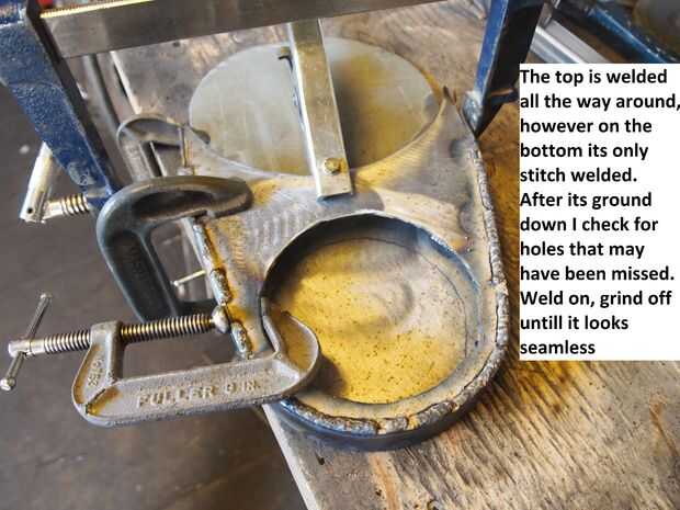 A continuación soldar los pies a la base de la parte inferior y dentro cuando sea posible. Estas soldaduras será muy duras moler abajo, así que no donde es menos evidente.