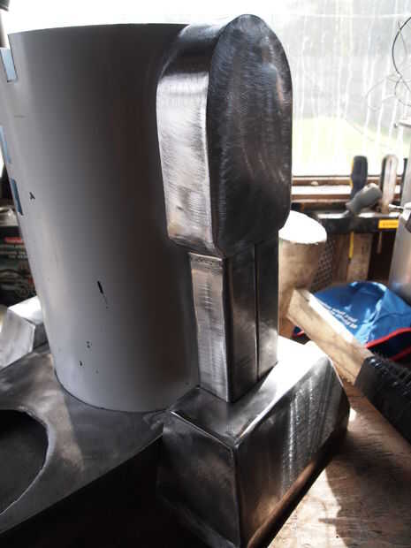 A continuación hice dos una pulgada pedazos gruesos de sandwich y tubo cuadrado de acero soldado con autógena entre. Al igual que los hombros que corte una tira larga de acero para doblar alrededor de él. Al igual que antes, soldar al comienzo y luego dóblelo lentamente alrededor de soldadura a medida que avanza.