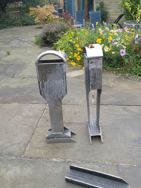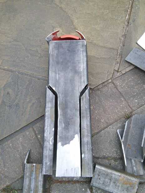 Para crear la forma, si las piernas de R2D2 les marqué fuera con mi marcador mágico y cortaron mis 4" molinillo. Esto tomó las edades y había utilizado varias hojas. Un cortador de plasma sería mucho mejor para este trabajo.